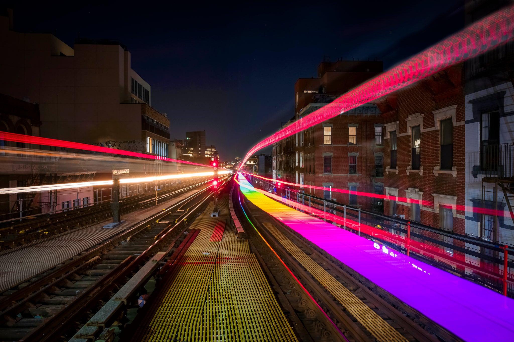 Shot at Myrtle Avenue / Broadway Station in Brooklyn, Stuy Town captures a Manhattan-bound (J) train as it threads through Broadway’s elevated tracks, where old steel meets new motion. The long exposure technique transforms the passing train into a stream of glowing energy, cutting through the frame with urban precision. Set against the textured backdrop of rooftops and rusted overpasses, the image becomes a portrait of Bed-Stuy in transition: rooted in legacy, yet always in motion.